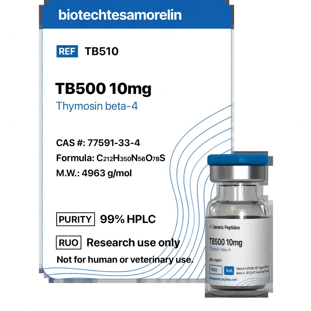 TB 500 10 mg from Generic Peptides delivers exceptional purity and bioactivity, vital for regenerative research. Its high solubility and stability ensure versatility across experimental designs, from in vitro cell assays to in vivo healing models. Produced in the USA, it meets stringent quality standards and offers rapid domestic shipping.